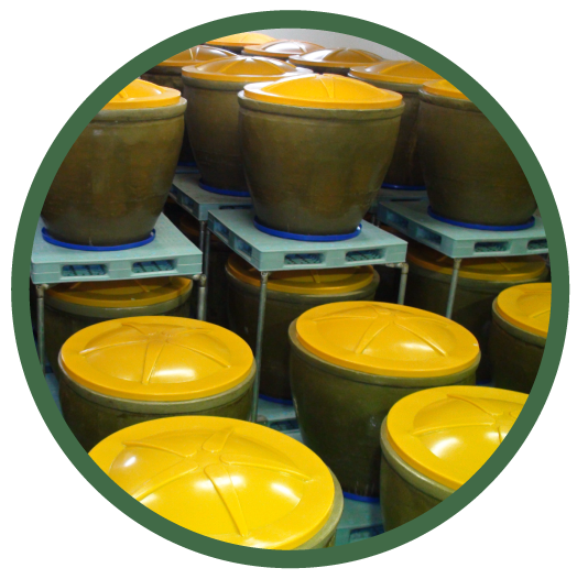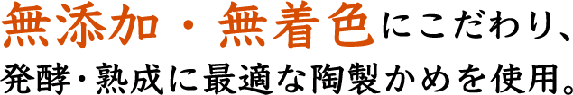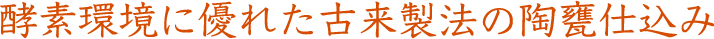 有用菌の発酵に最適な 太古からの伝承の かめを使用し、 ゆっくりじっくりと 発酵・熟成させます。