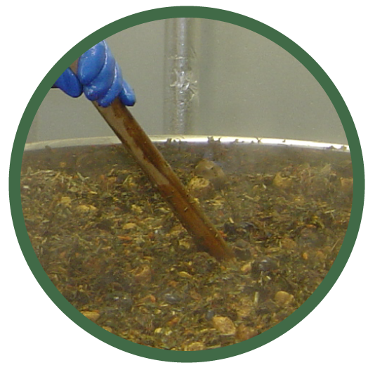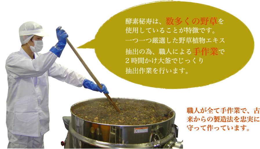 大釜等を使い 精選した野草のエキスを 抽出します。